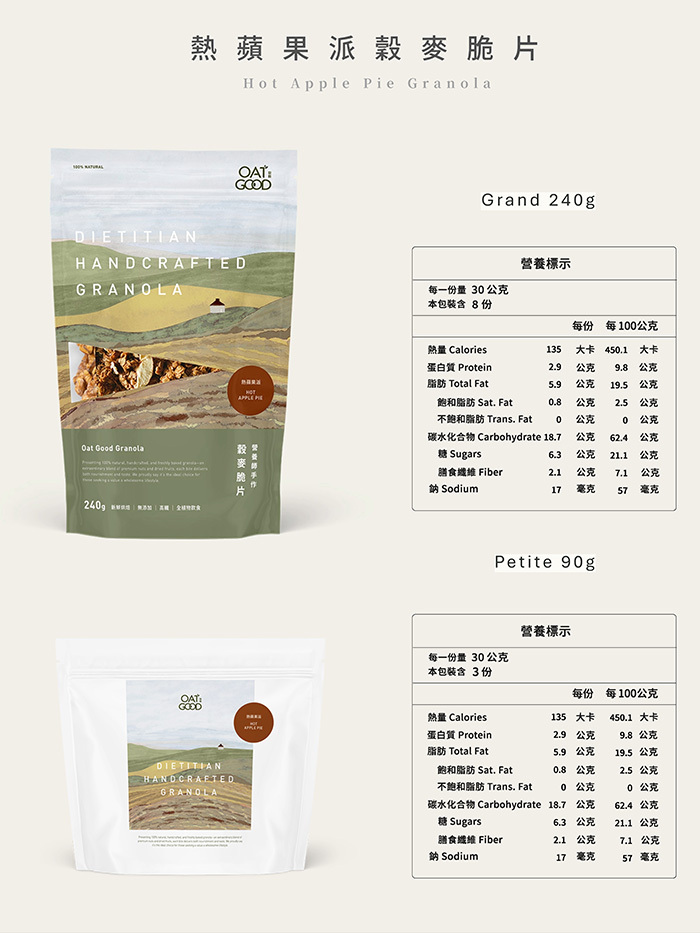 使用有機厚燕麥及加拿大特級楓糖每日新鮮烘焙,加入富士蘋果乾及肉桂香辛料,彷彿在品嚐蘋果派一般。