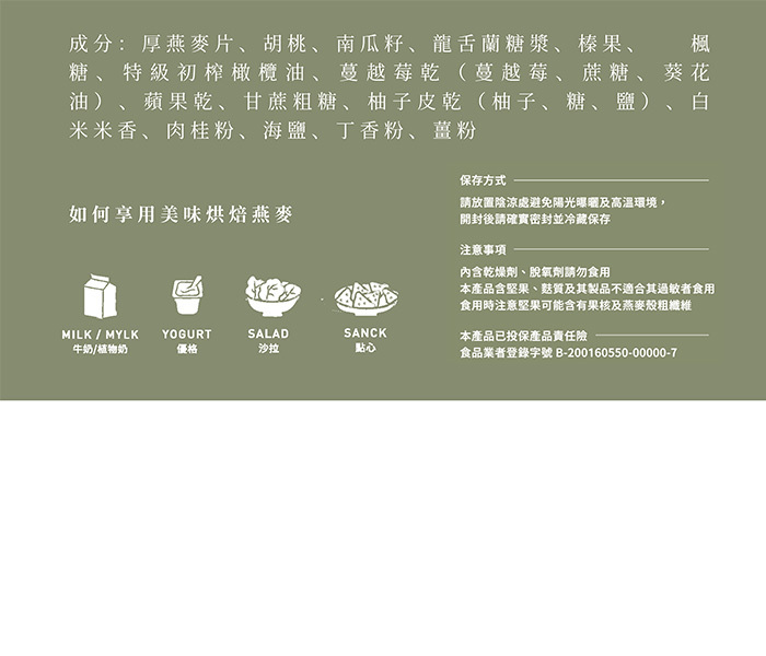 過敏原資訊:本產品含有麩質、堅果及其製品不適合其過敏體質食用(過敏原食材標示於成份中粗體字)